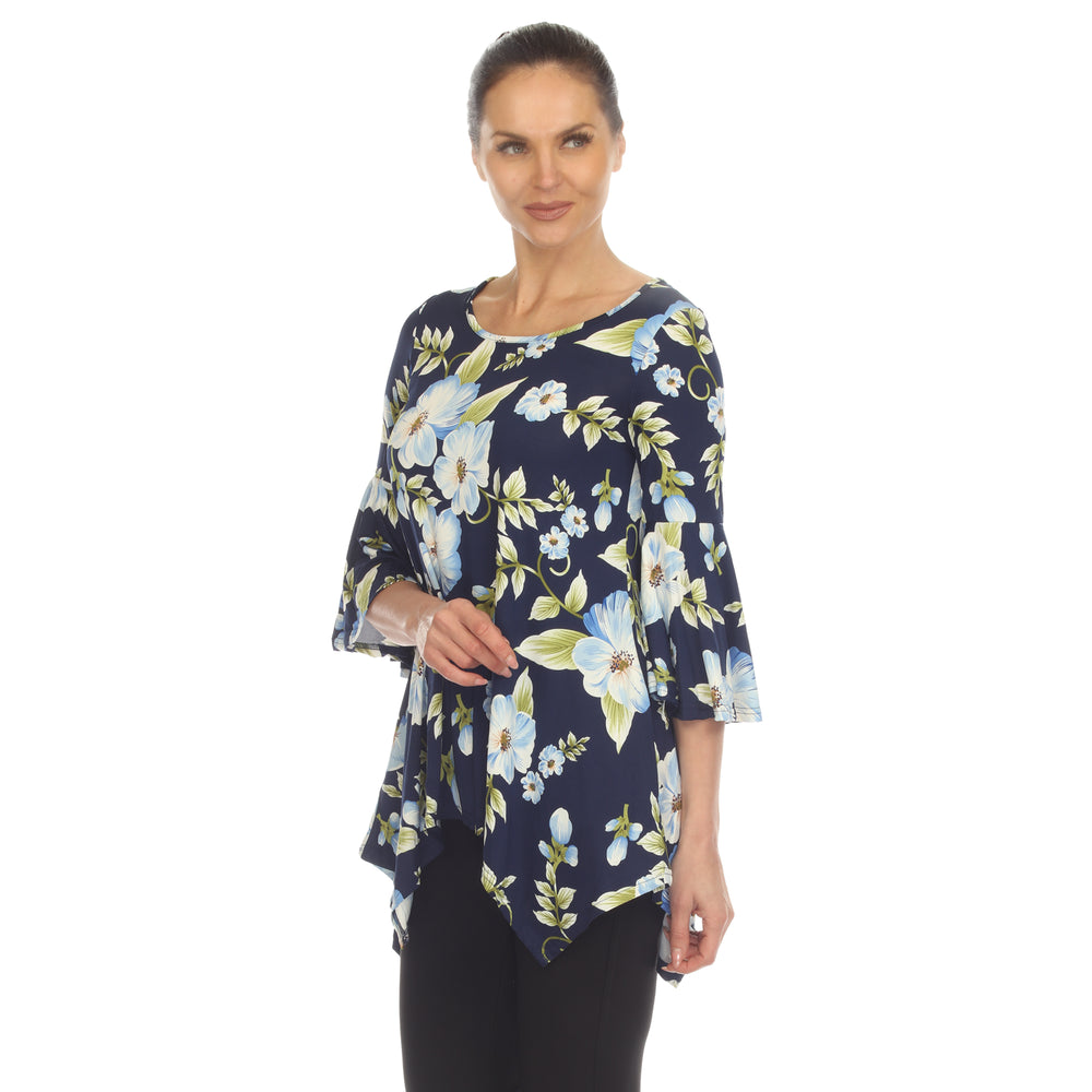This flattering tunic from White Mark drapes stunningly on your body. Bell sleeves add a festive flare to this versatile crew neck tunic.