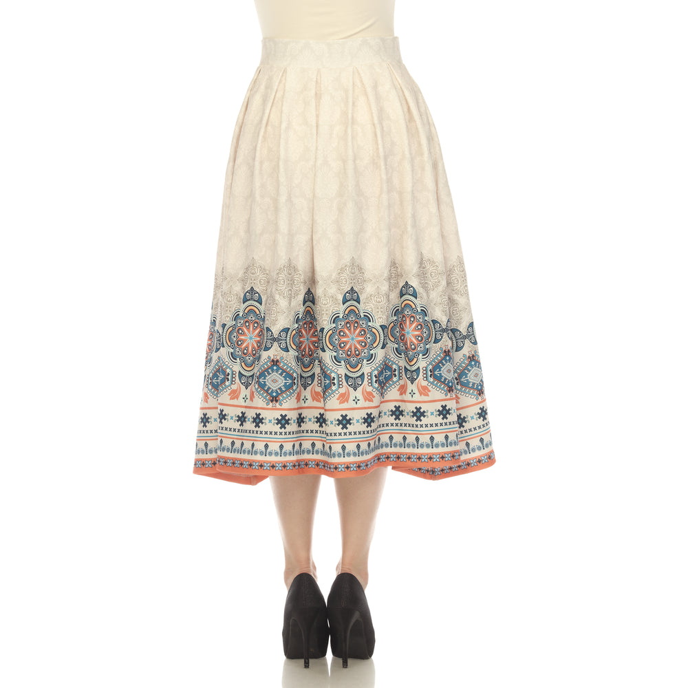 Whether you're dressing up for a day at the office or enjoying a casual outing with friends, our Women's Pleated Skirt is the perfect choice for effortless style and comfort. Indulge in the timeless allure of border prints, delicately adorning the hem of the skirt with intricate patterns and vibrant colors. This Midi Skirt features functional side pockets, full elastic waistband and a subtle reverse arc hem that adds a twist to this classic design.