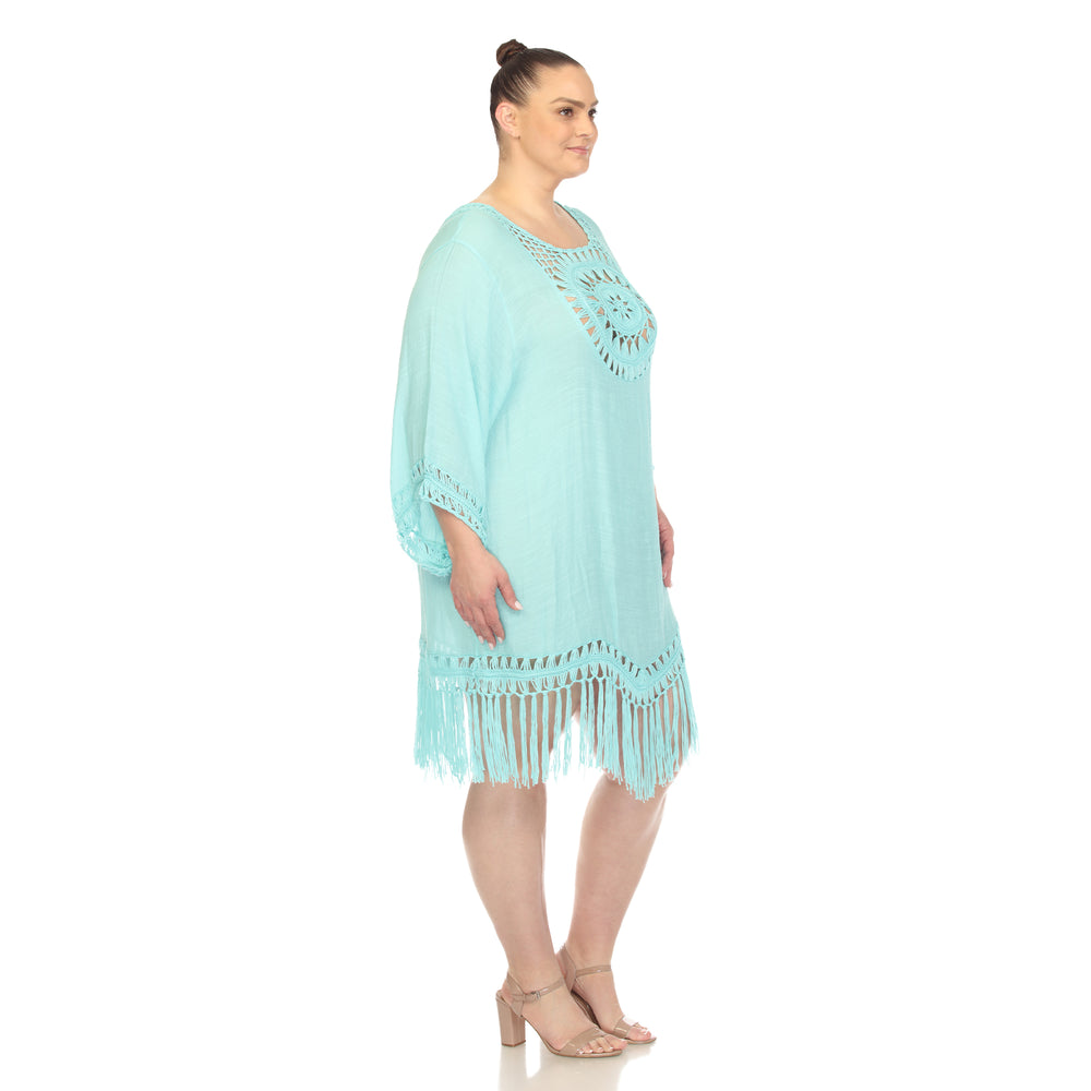 Women's Plus Size Crocheted Fringed Trim Dress Cover Up
