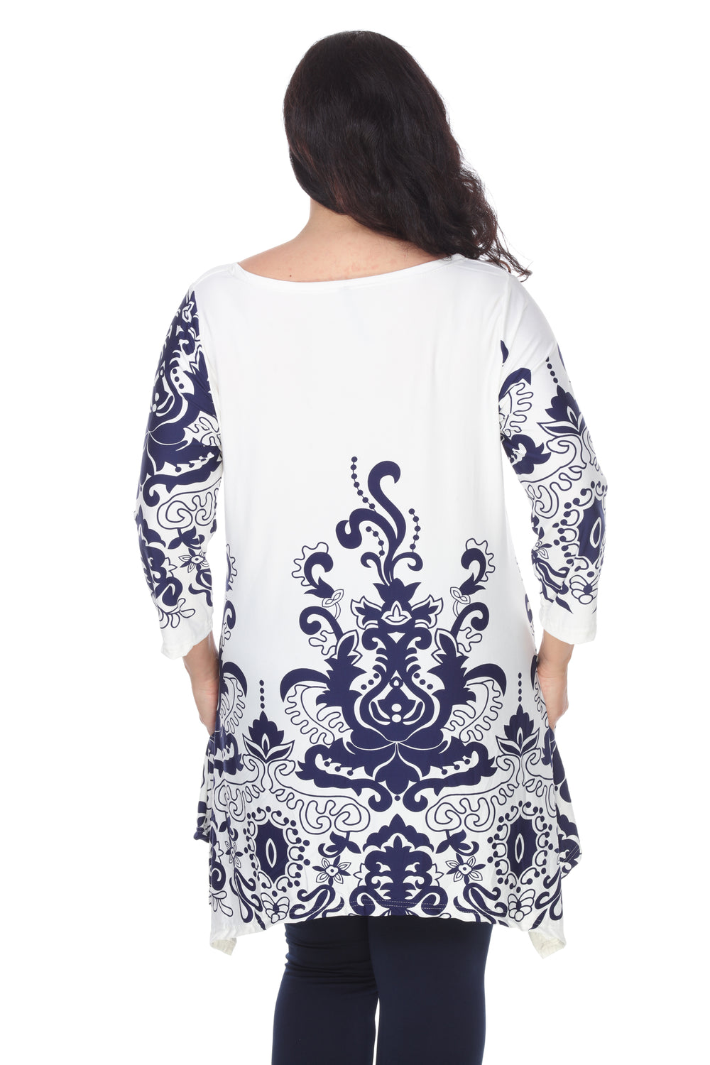 This flattering tunic from White Mark drapes stunningly on your body. With a bold, flirty print and 3/4 sleeves, and side pockets you are sure to feel comfortable and look stylish.